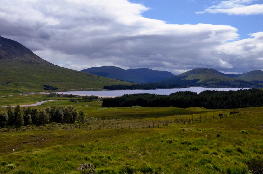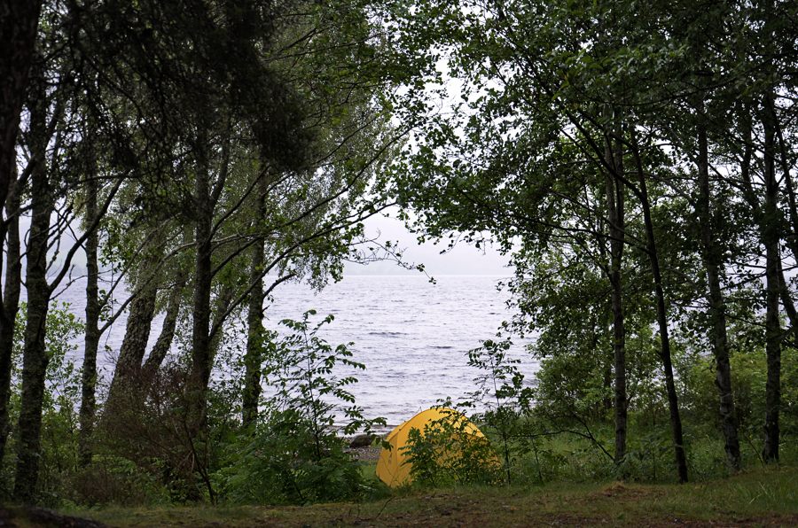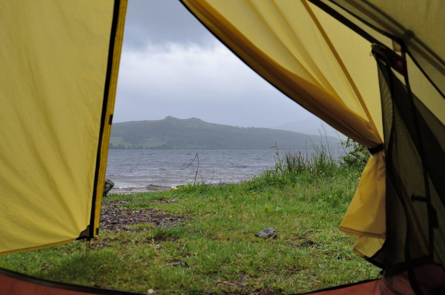 View from the tent on a rainy day at Loch Rannoch. Our only really rainy day in Scotland, and it cleared up later.