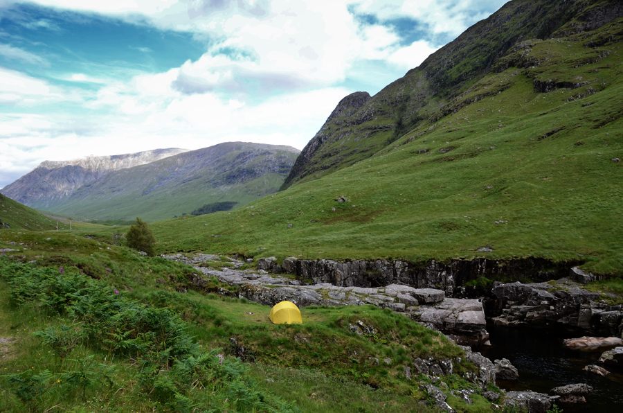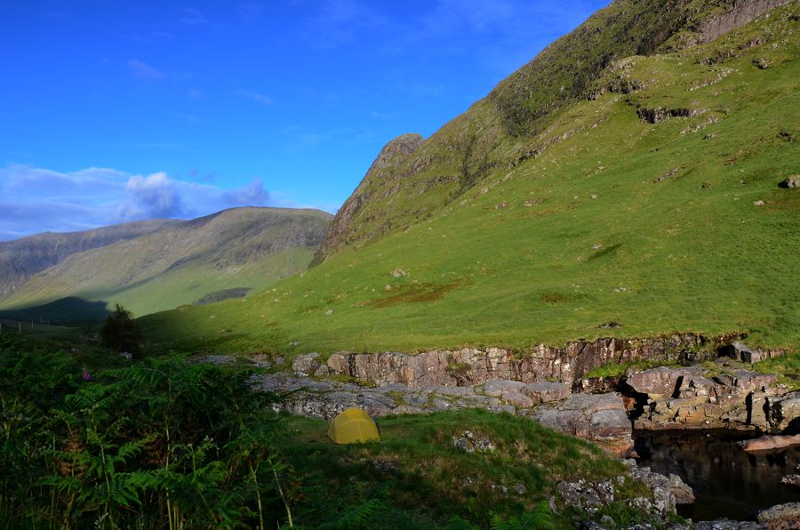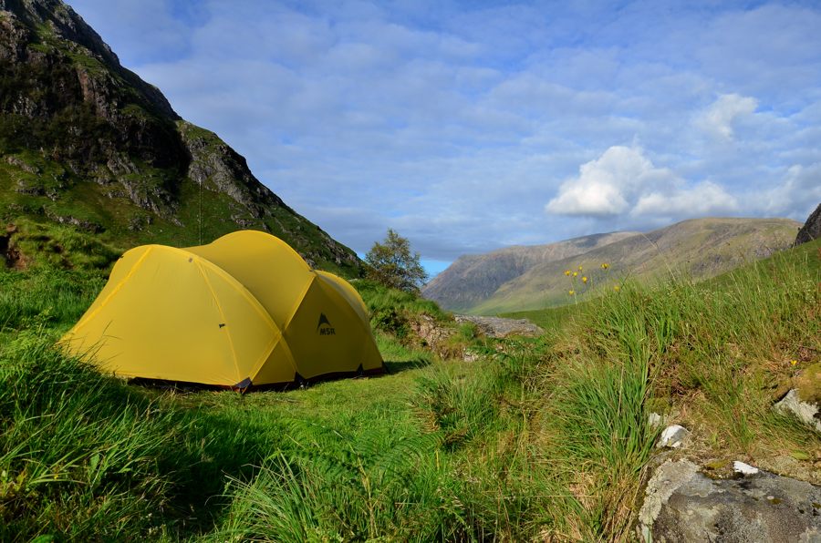 Our Mutha Hubba tent camped by the River Etive in Glen Etive, Scotland