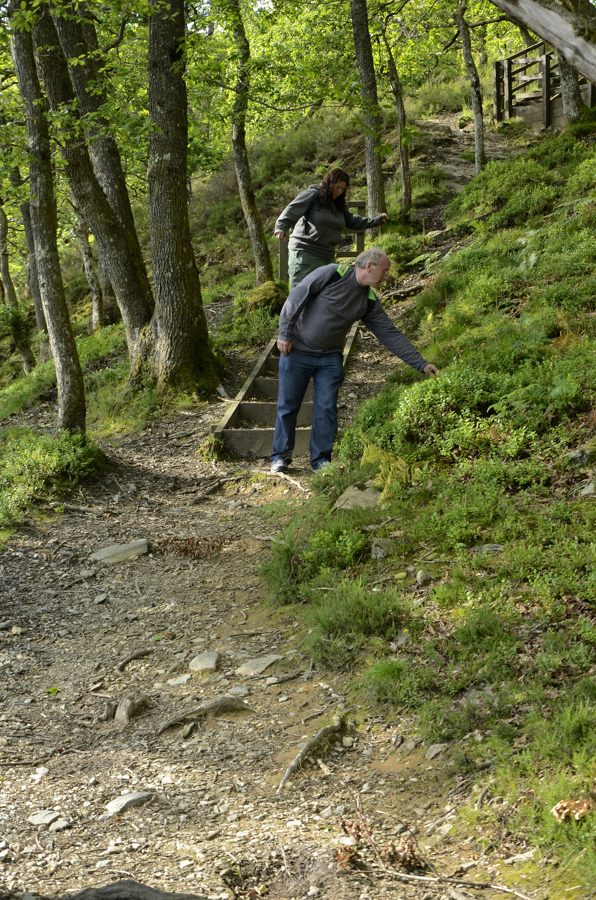 Foraging for berries – Keith and Ginger supplementing lunch on our Comrie hike.