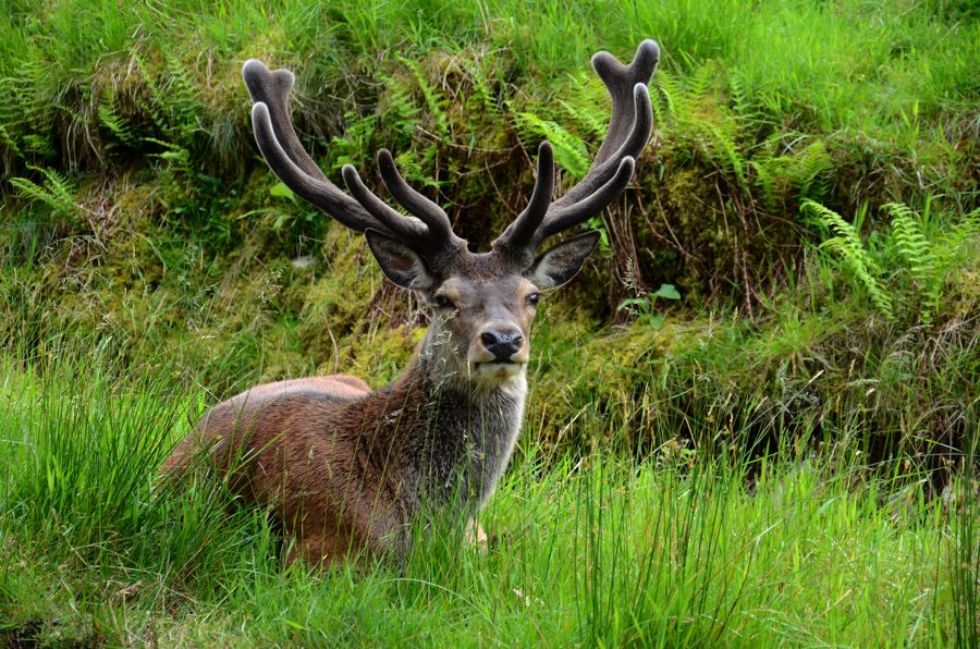 Stag laying, apparently completely unharmed and totally disinterested at the side of the road