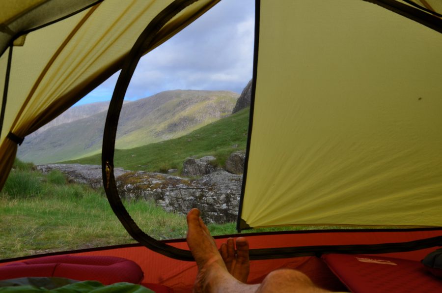 The view from inside our tent by Loch Bad a’Ghaill, Scotland