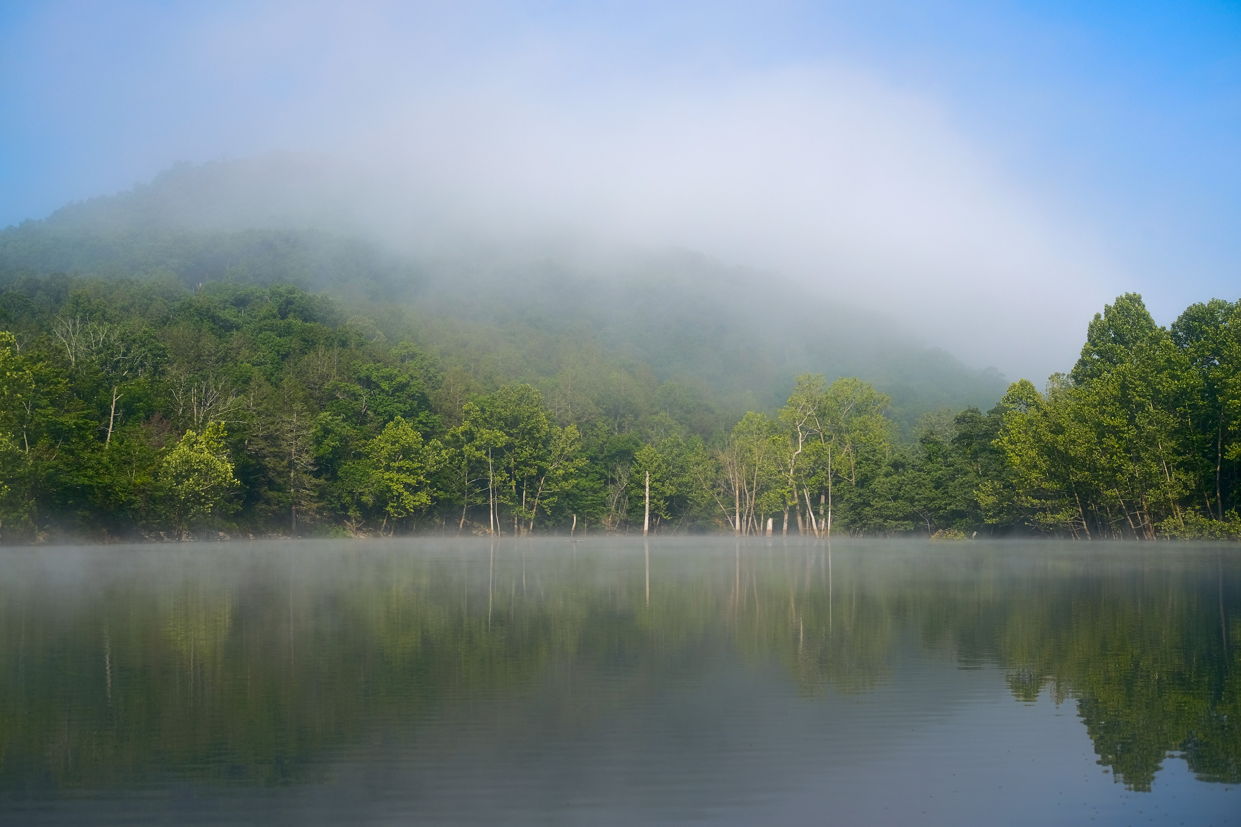 Lifting mist – spot the heron. Copyright © 2021 Gary Allman, all rights reserved.