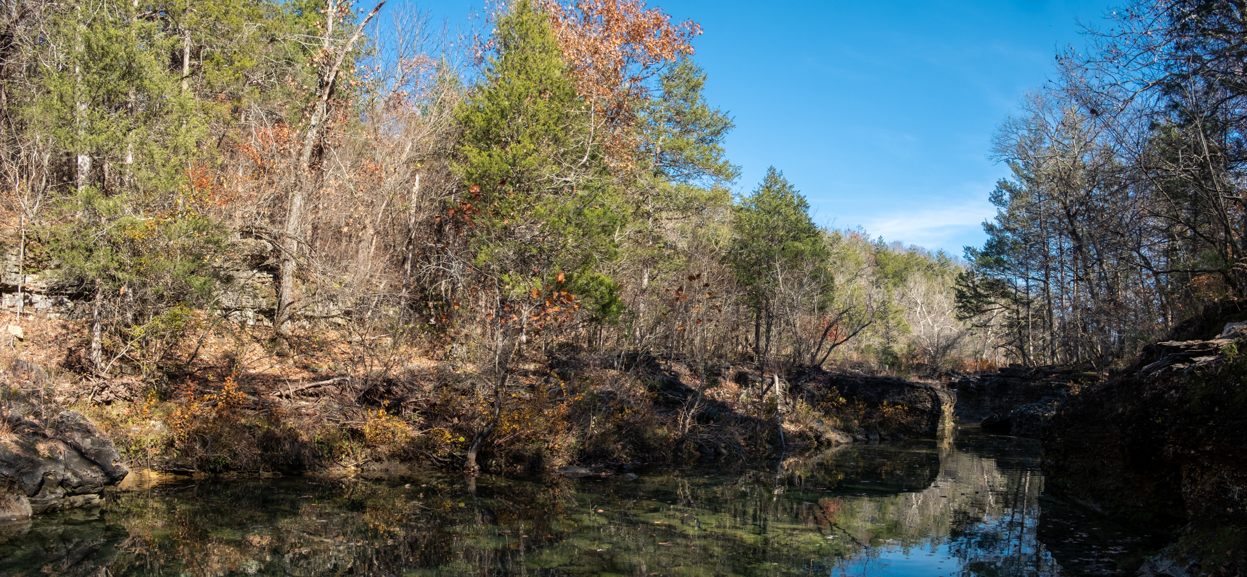 Large pool on Piney Creek – I didn’t check how deep, but judging by the color, a few feet. Copyright © 2021 Gary Allman, all rights reserved.