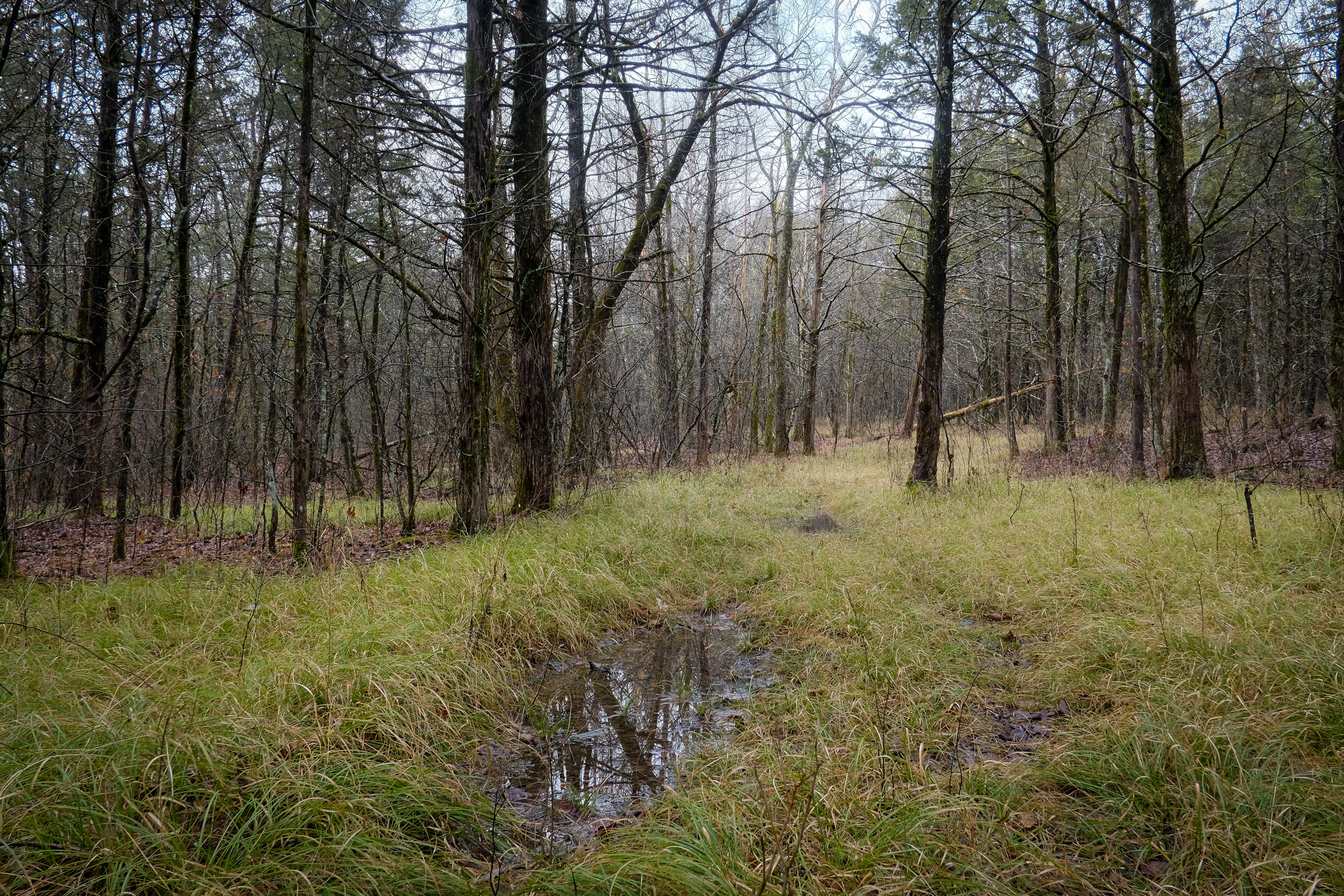 Old forest road – notice how wet and green it is. No wonder I found several springs near here. Copyright © 2021 Gary Allman, all rights reserved.