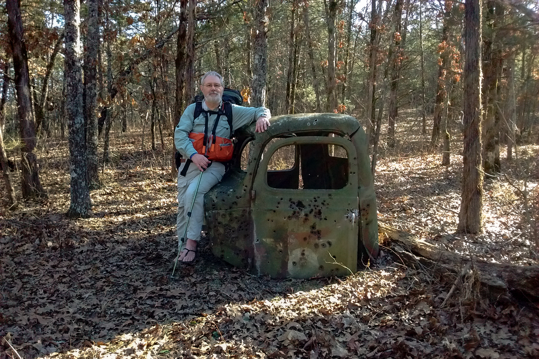 Gary on the Pees Hollow Trail. No we didn’t use the truck cab for target practice. Note the Ribz Front Pack.