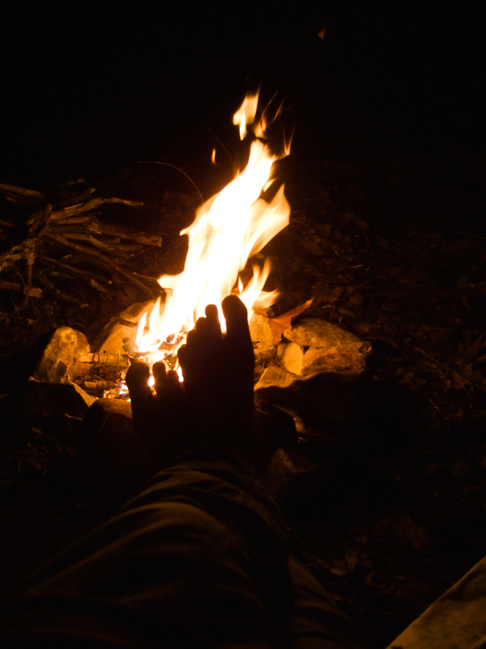 Thursday morning we had a leisurely start to the day – waiting for the temperatures to warm up. Before we left I whetted down the area where we’d had the campfire, dispersed the stones, cleared the ashes and covered it all over, so you wouldn’t know we had been there.