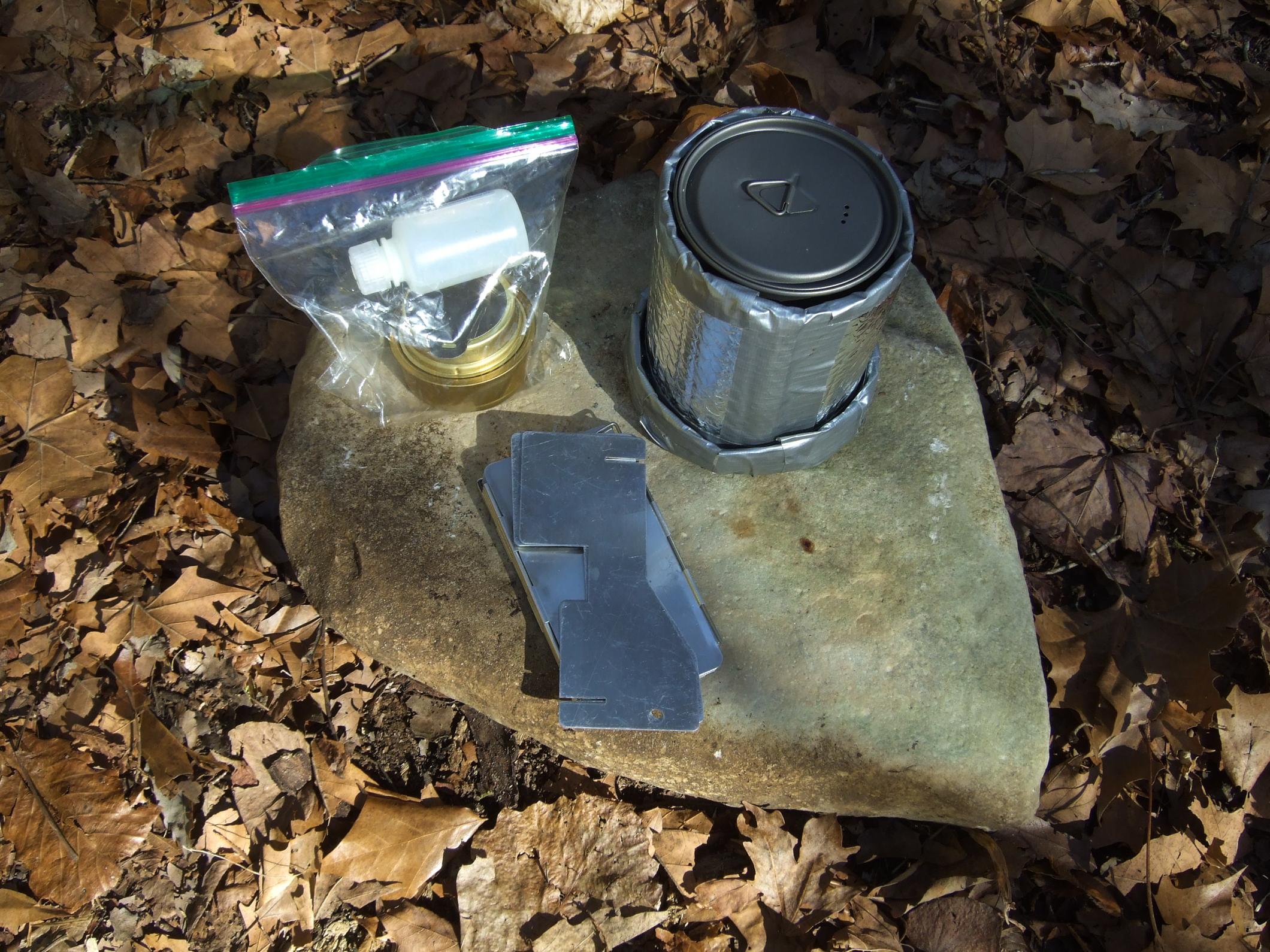 Trangia alcohol stove. This worked fine, but contrary to what people say – you cannot transport unused fuel in it. It leaks. Checking on the Internet I discovered that the sealing lid is only meant to be used in camp to stop fuel evaporating. It is not meant to seal the fuel in while the stove is being transported. It is just as well that I put the stove in a zip-lock bag. It leaked a lot. The leaking can be cured by having the top seam of the stove soldered closed. Apart from that it was fine. Not as fast as a gas canister, but it did the job.