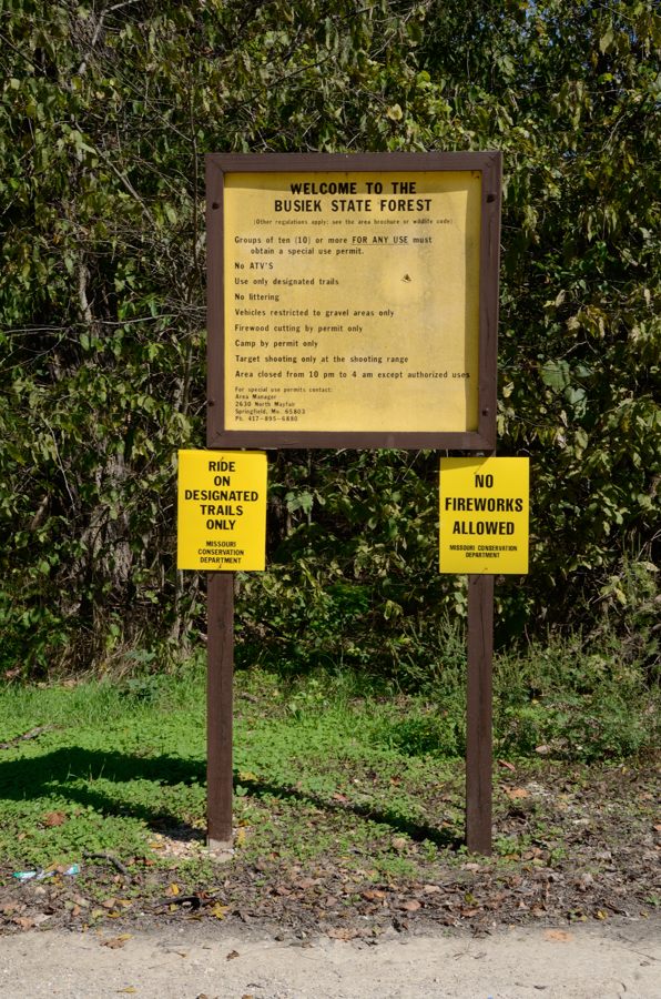 Busiek Sign at the South Trailhead. Hiking the Silver Trail at Busiek State Forest and Wildlife Area
