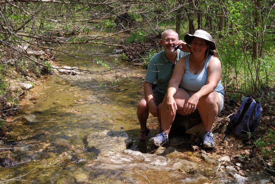 Hiking the White Trail at Busiek. This part of the trail runs alongside a small creek. It’s easy going but can get very muddy after rain.