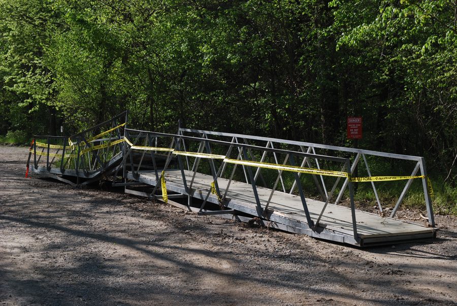 Steep descent on the White Trail. This trail has since been replaced with a set of switchbacks – much easier and safer to ascend and descend. Busiek State Forest and Wildlife Area