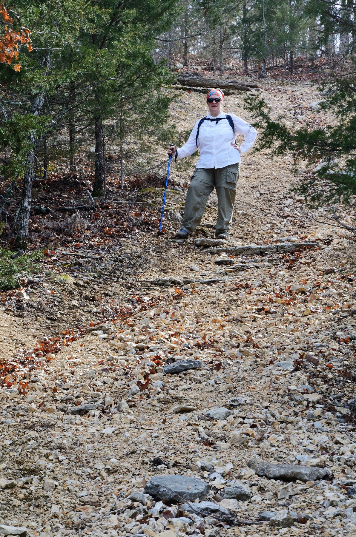 Ginger on one of the hills on the Busiek Silver Trail – Note the loose gravel surface