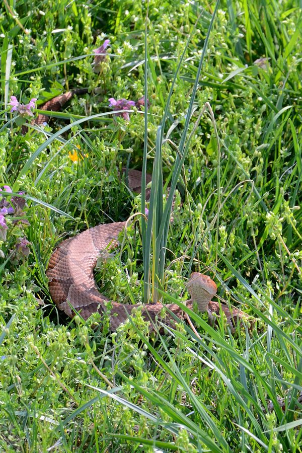 The copperhead likes to live close to creeks, rivers, river backwaters and swamps.