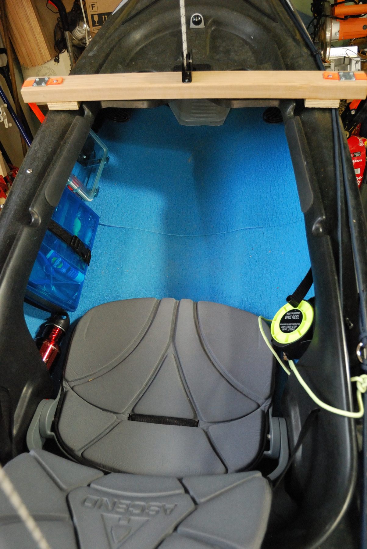 We use the kayaks through the winter, and I fancy some late and early season angling. The cold from the surrounding water can be a problem, so I fitted insulating foam into the hulls. We’ve not read about this anywhere, but it works really well. It also has the added advantage that it keeps any loose water in the bottom of the boat away from your legs. You can read more about this here.