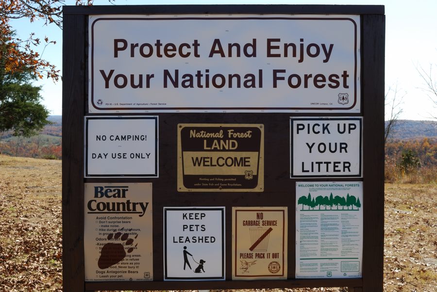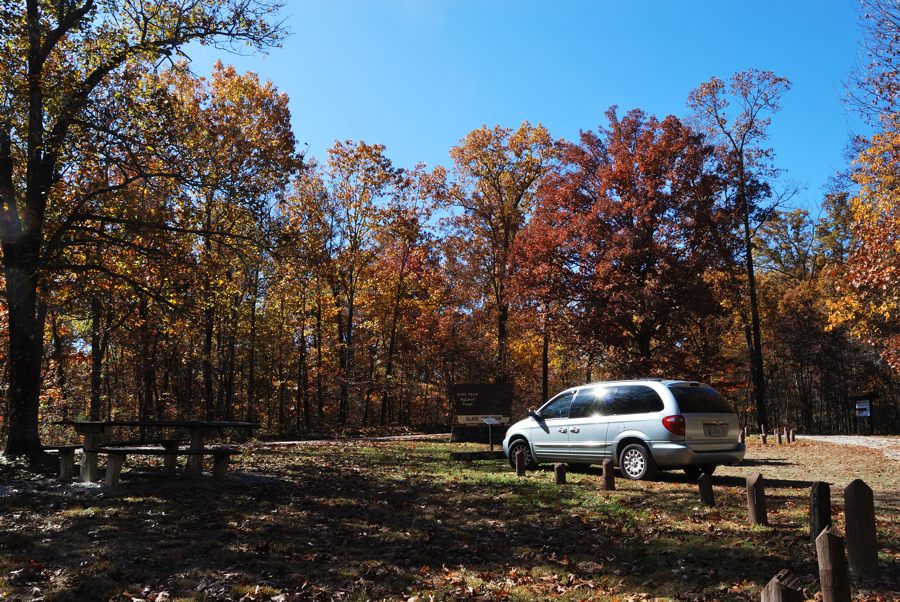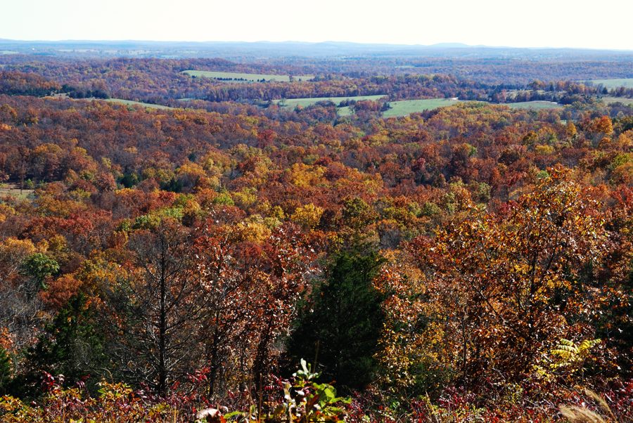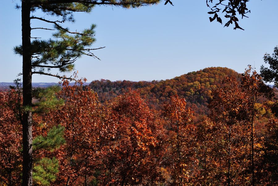 The Glade Top Trail is Missouri’s only National Forest Scenic Byway. The 23-mile trail runs through narrow ridge tops above the surrounding countryside. Along the trail there are seven overlooks with off road stopping places providing panoramic views that reach to the Springfield Plateau twenty miles to the northwest and forty miles south to the Boston Mountains in Arkansas.