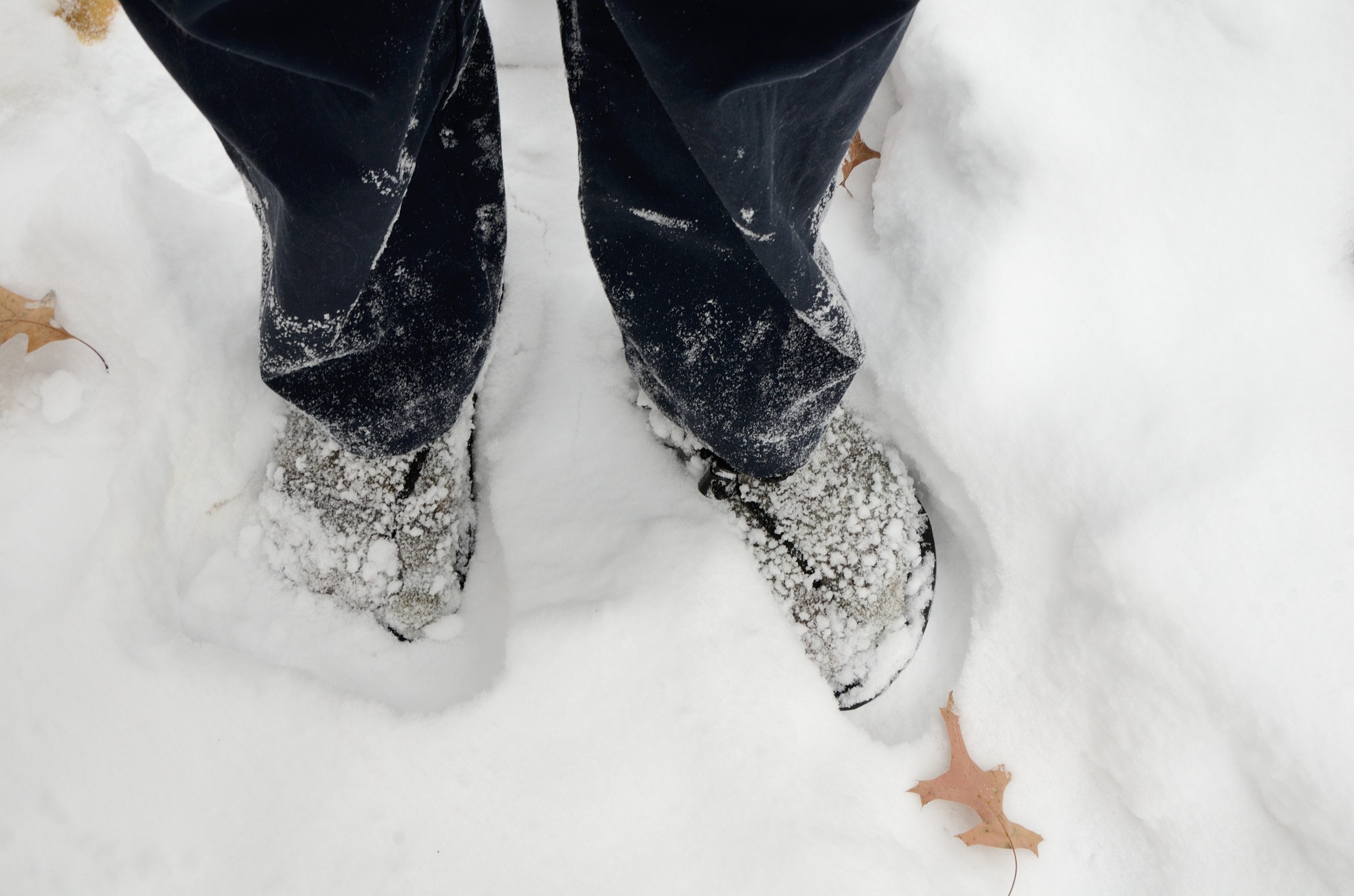 Update December 2013: I took advantage of some recent bad weather to try out my huaraches in colder conditions: 18°F (-8°C) and six inches of snow. I wore my huaraches and woolen toe socks while I did some chores outside in the snow. Ginger thought my choice of footwear was hysterical. So much so she was reduced to tears of laughter. Whatever. I wanted a chance to try the socks & huaraches out. Fifteen minutes isn’t long enough for a proper test – but I must admit to being impressed. My feet didn’t get cold.