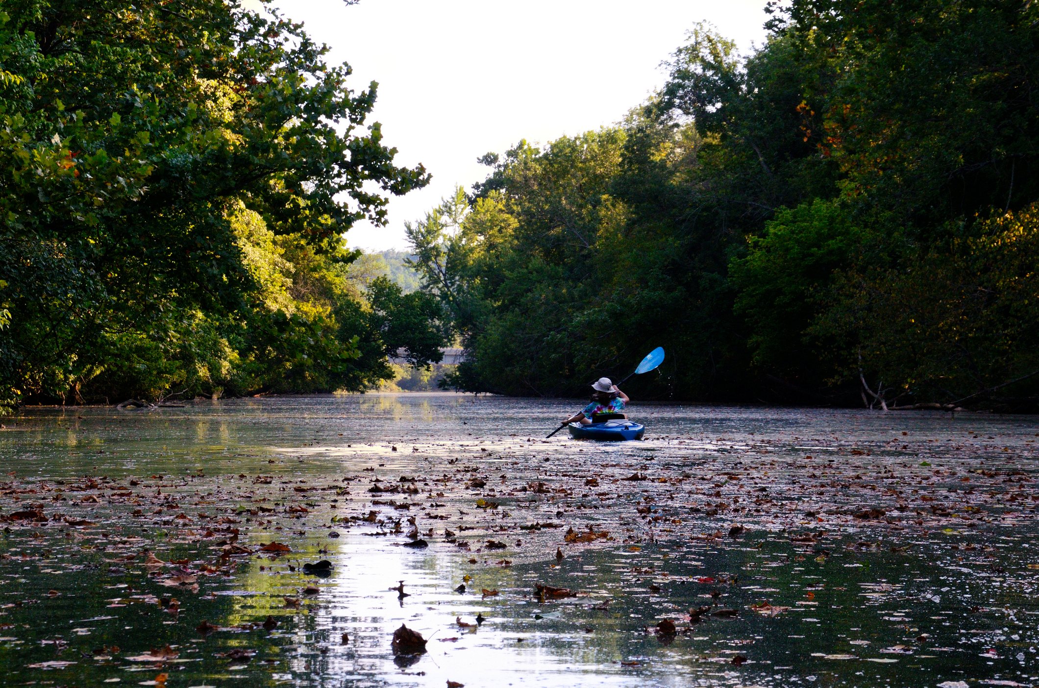 We had a nice quiet paddle up the James River. Apart from lots of turtles, a couple of herons, a humming bird and about half a dozen kayaks we didn’t see much. I was surprised at how many leaves were already on the water. If fall isn’t with us yet, it is definitely just around the corner.