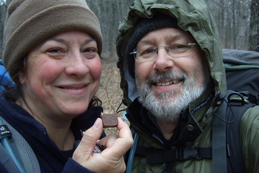 Ginger and Gary during a spring break backpacking trip on the Berryman Trail.