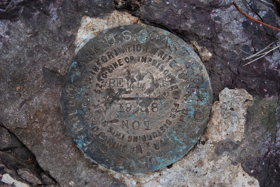 A survey marker at the summit of Bell Mountain Wilderness. Oddly, this was the second marker that I found, this one seemed to be a few feet higher than the other one.