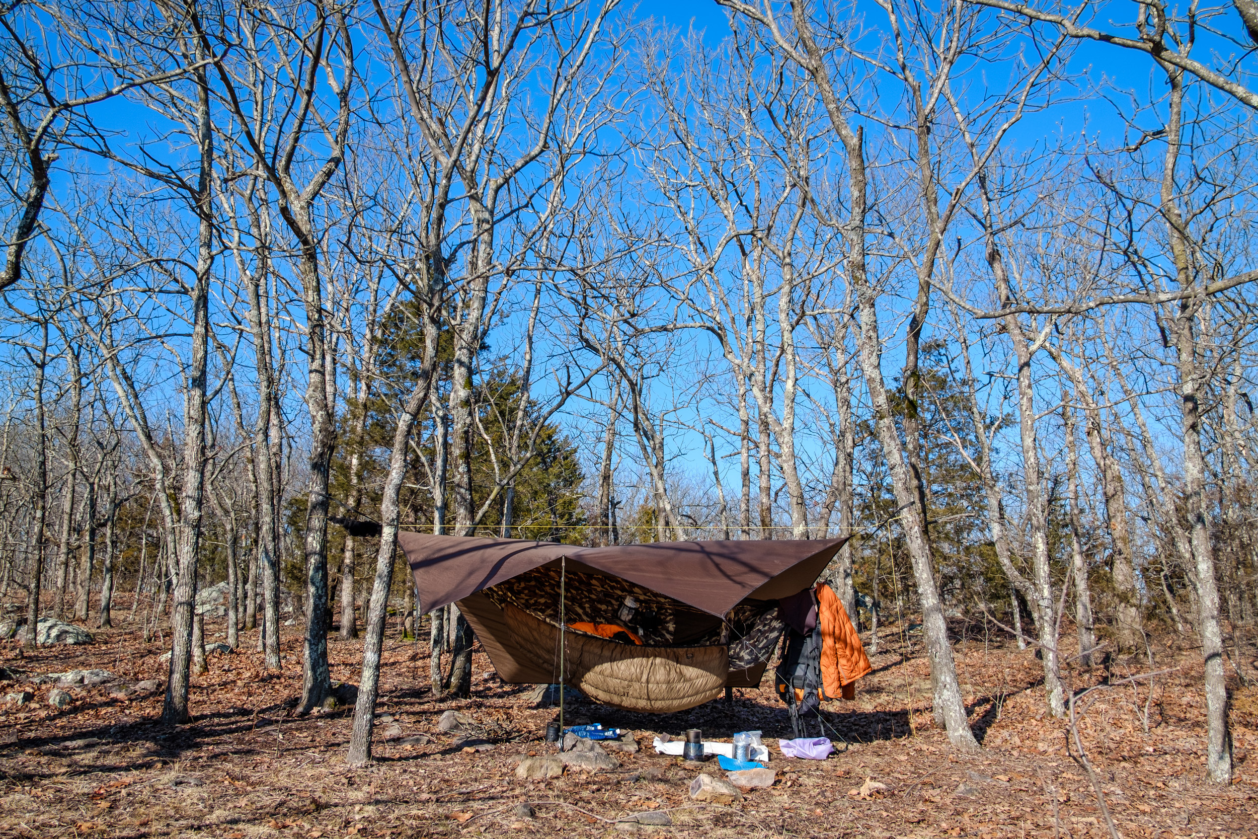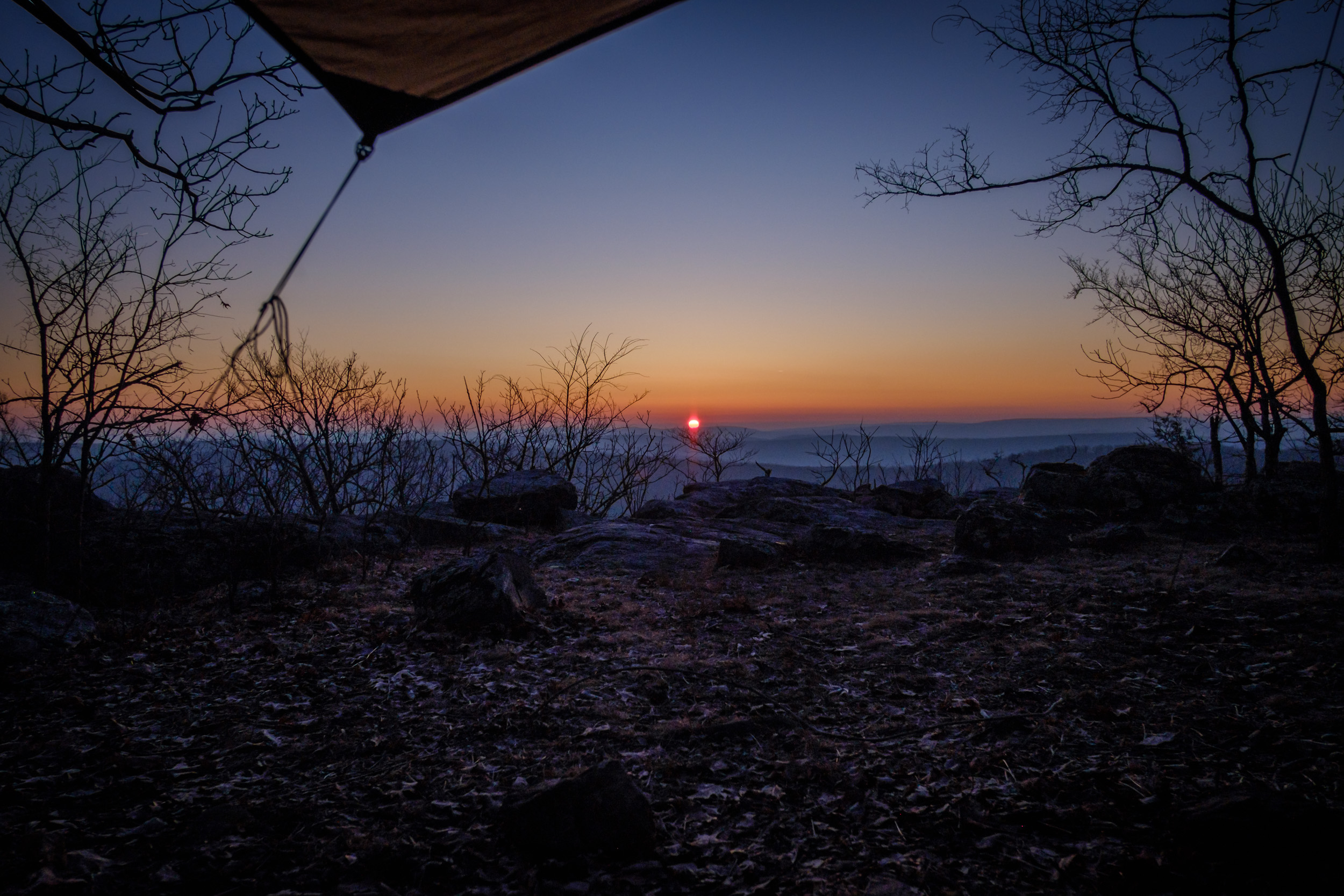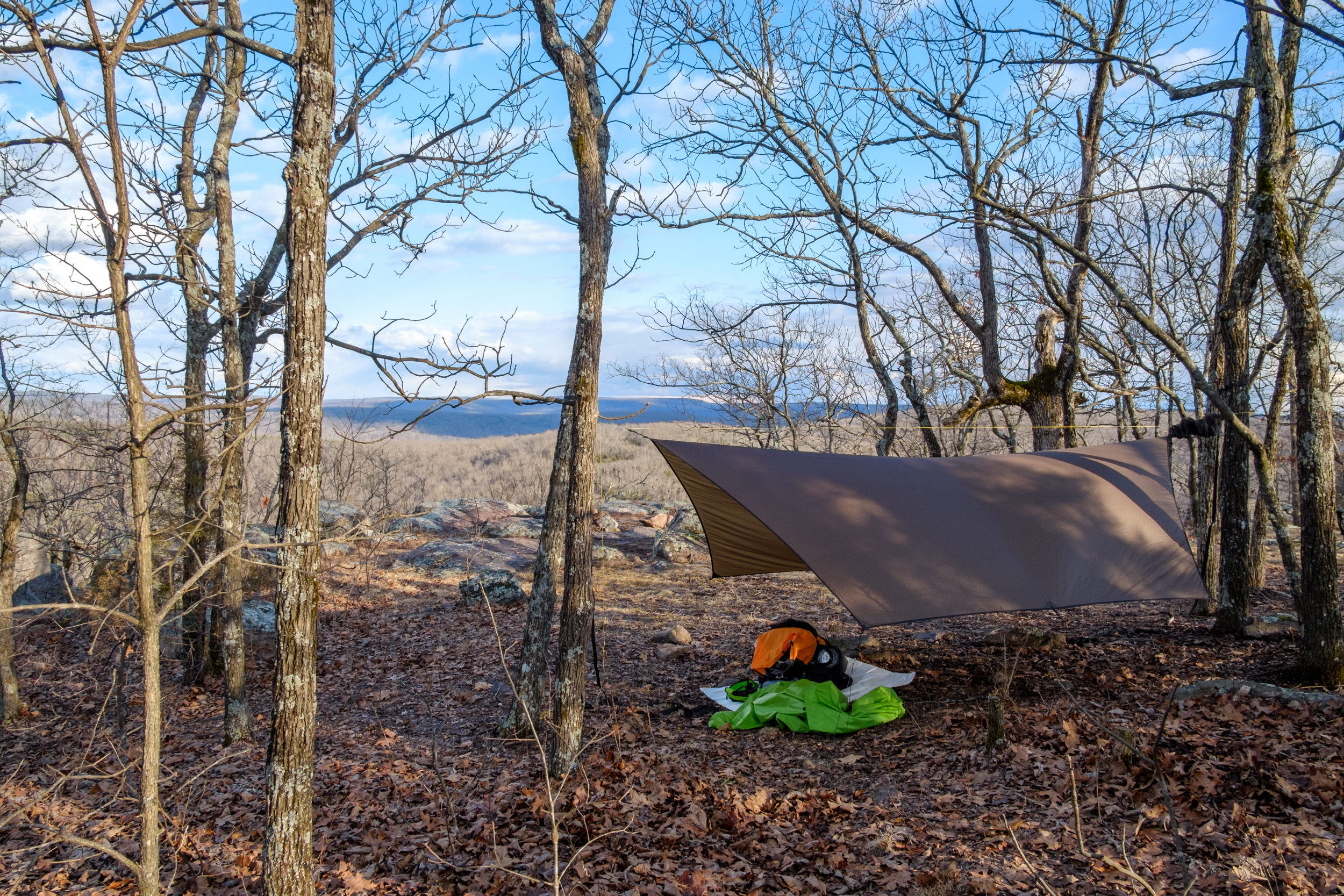 Camped on Bell Mountain. Notice the frost on the tarp. Bell Mountain – Day Two. Copyright © 2020 Gary Allman, all rights reserved.