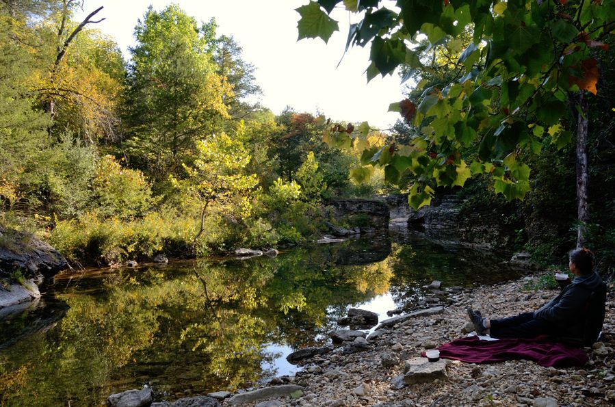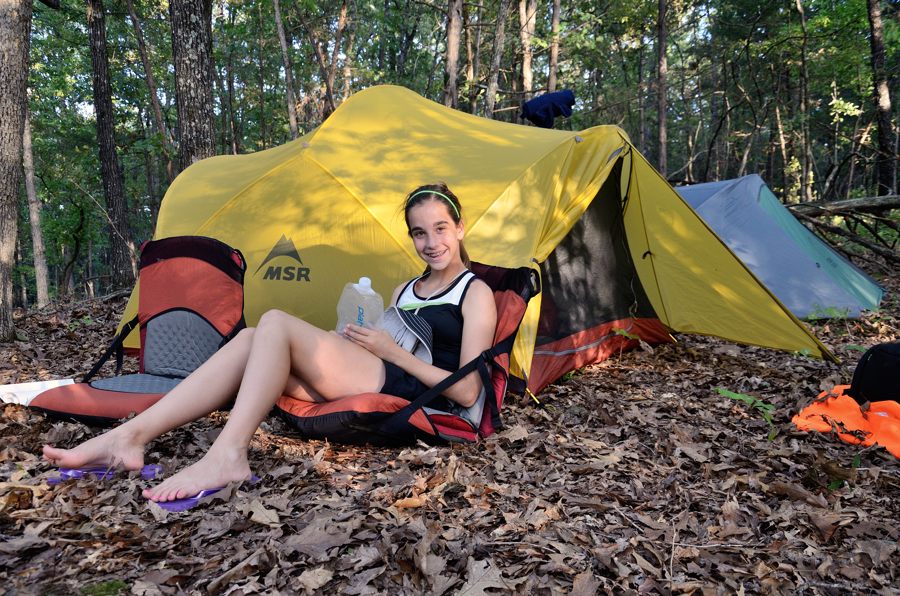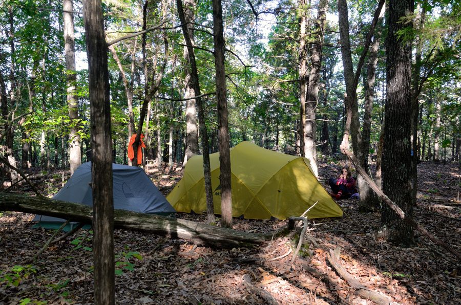 Back on the trail, we crossed Long Creek and followed the trail to the fire ring at the end of Devil’s Den West Trail. This place is a bit special for us, as it’s where we stopped on the first night of our first ever backpacking trip back in December 2010.
