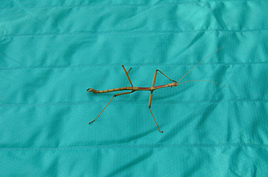 After dinner we lit the campfire. We were joined by a walking stick who was very careful to keep out of the full force of the heat. Showing that I had no ill will towards insects despite my aching arm, I eventually relocated him to a bush away from the fire.