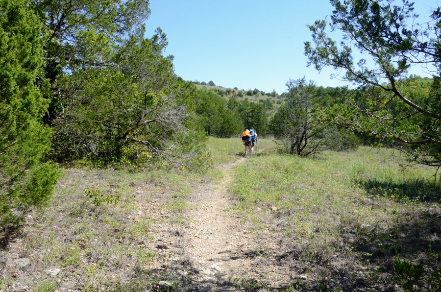 Water was a concern, there had been some rain in the Glades area, but we didn’t know what the conditions were likely to be. We made a back-up plan to only stay one night if we couldn’t find any filterable water. The weather was also set to be a little variable. Dry, but with temperatures varying from 85°F in the day to 45°F at night. We are also in the middle of the Missouri bow hunting season, we packed two hunting orange vests. One for Lanie, and one for me. I need it as all my gear and clothes tend to be camo green. Ginger with her white shirts and bright blue backpack has a lot less to be concerned about.