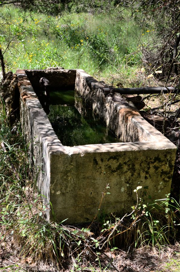Lanie was tired and wanted to stop at the spring. However the spring had dried up, there was no water dripping from the pipe. The spring box had water in it, but it was thick with algae and I didn’t fancy blocking up our water filter trying to get some clean water from it.