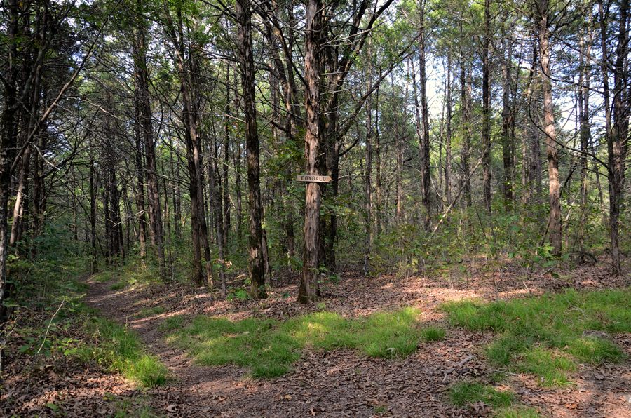 Arfter crossing the glades there’s a short walk in woodland, and before I was expecting it we met the junction with the Pilots’ Trail which skirts all along the back of the Pilots from the Tower Trailhead on Hwy 125.