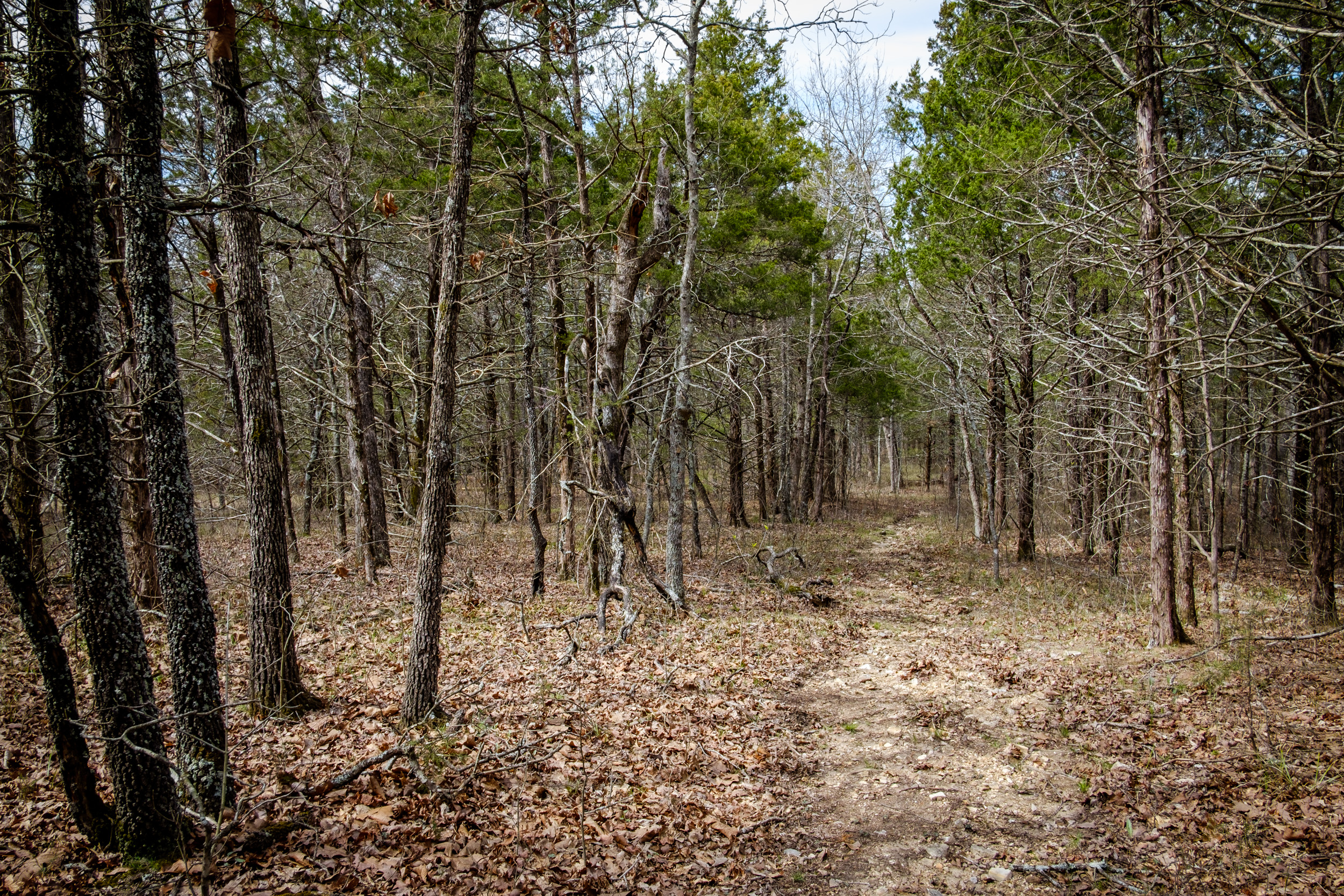 Trail junction. Make sure you follow the trails that have a marker, or you’ll end up on the glades that run between ‘Cab Creek’ and Brushy Creek.