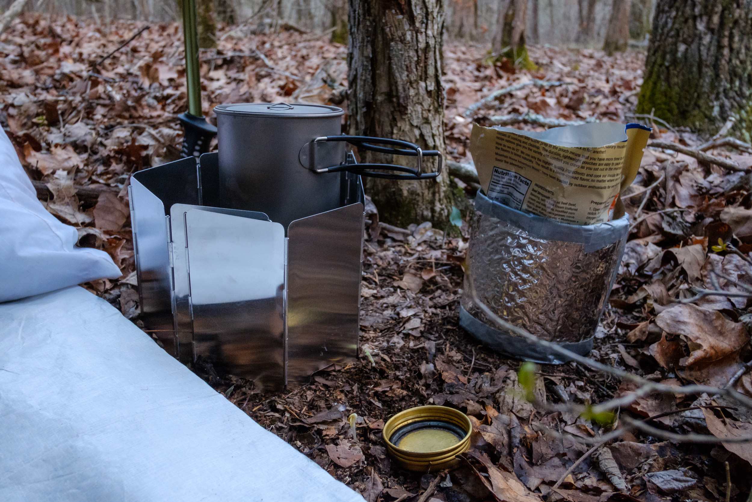 I had dinner sitting under the tarp. The Mountain House Beef Stroganoff was tasty enough but seemed a little salty.