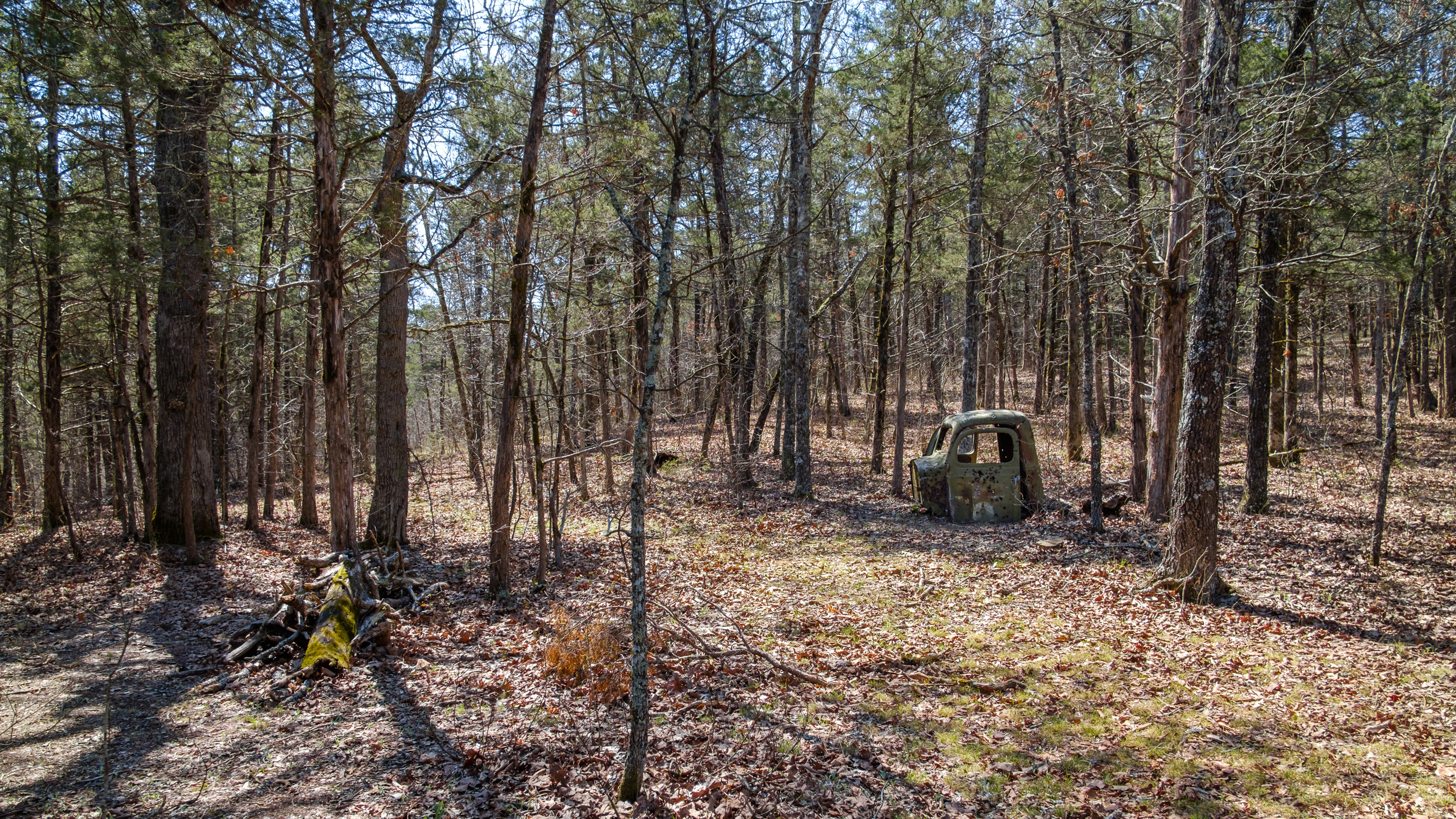 I decided to go back to Hercules Glades Wilderness, only this time hike the Pees Hollow trail. Pees Hollow is a six miles loop, which makes for a good day hike — if you don’t get lost. As I would be starting later in the day, I would hike the trail clockwise, starting at the western (furthest) end, and hike the mile and a half down to ‘The Cab’ — an old truck cab abandoned in the wilderness — there is a fire ring by the cab, and I’d either spend the night there, or do some exploring and find a spot to camp along what we call ‘Cab Creek’. The next day, it would be fairly easy, but, uphill hike for the remaining four or so miles of the trail to complete the loop.Day One