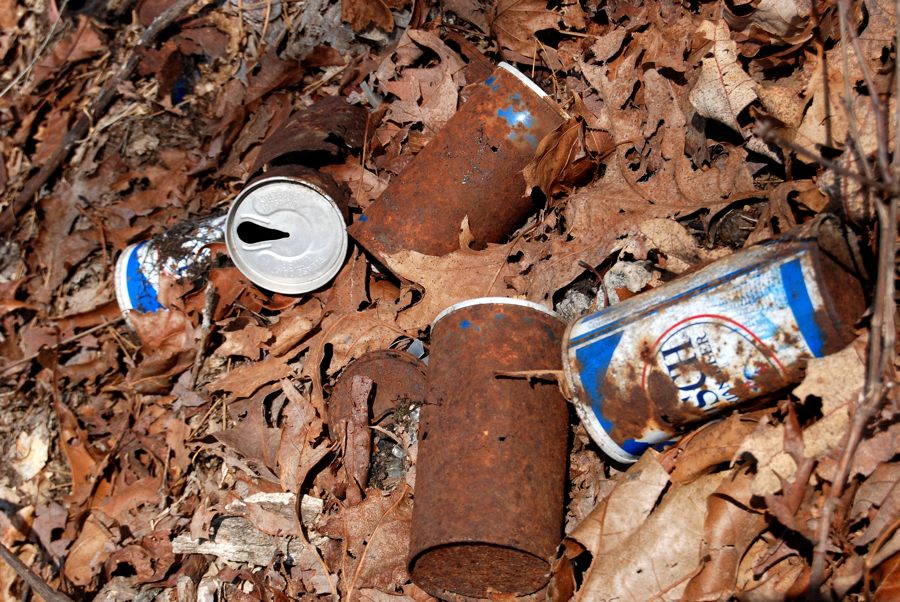 We woke to another perfect and unseasonably warm sunny day. The trip back to trailhead was uneventful. The trail surface is very easy going throughout this wilderness with none of the large rocks and difficult footing that we often see in the western part of the Ozarks. On the way out we passed what appeared to be a very old pile of trash. Later we checked the cans online and reckon they are from the seventies,