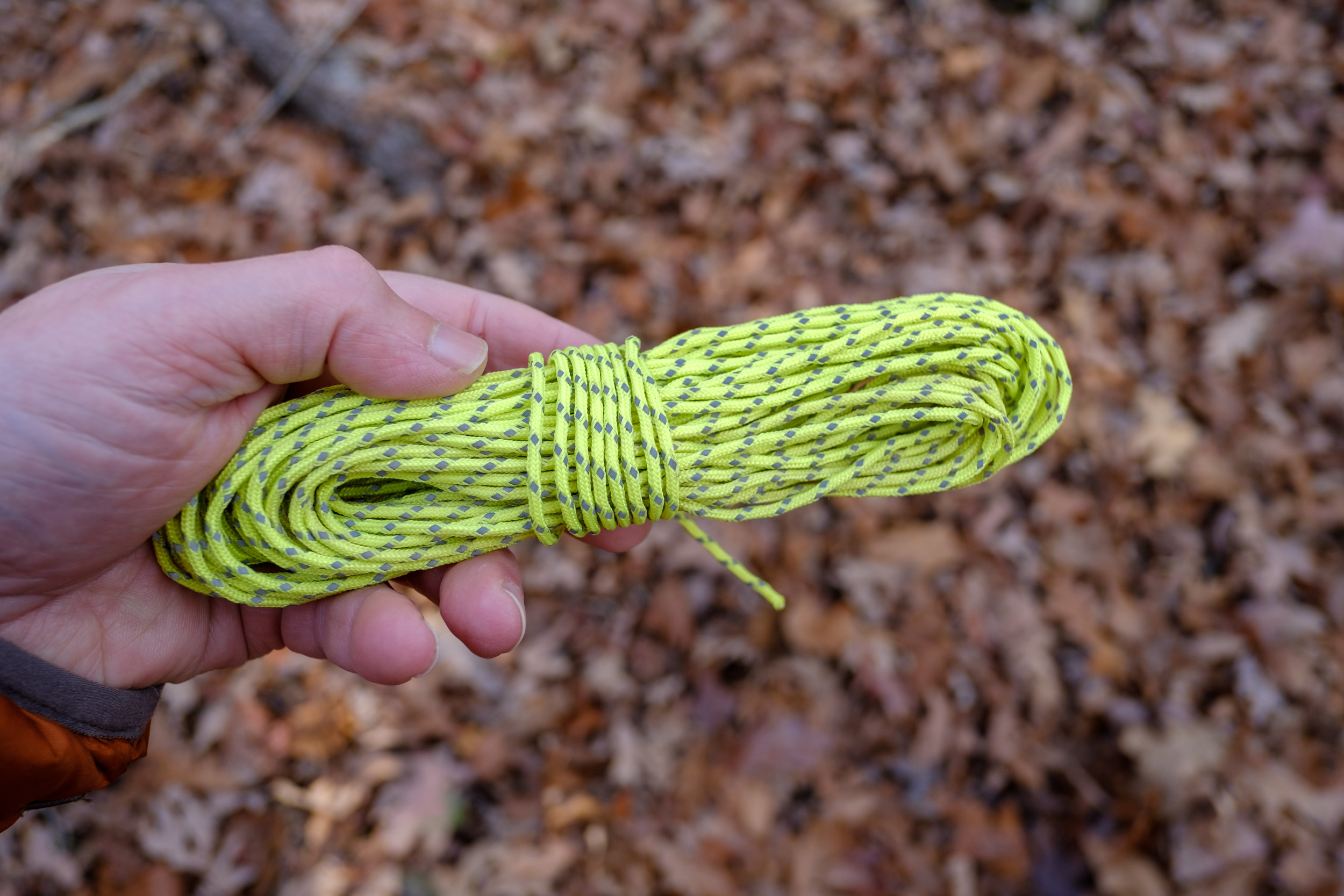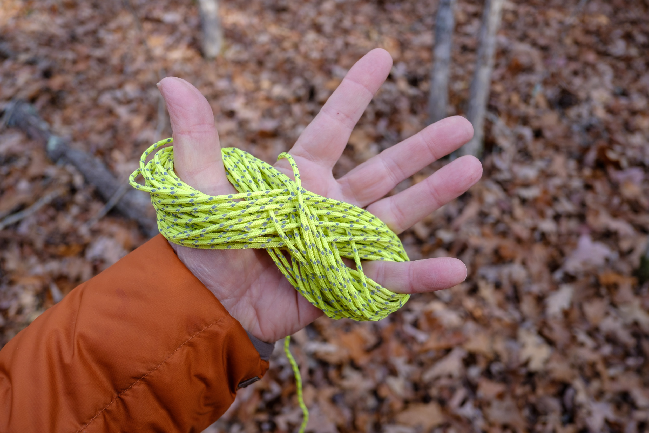 Ground sheet. This one is interesting and almost borders on aesthetics. I’m going to try putting it away when I’ve finished setting up camp. I really don’t need it until it is time to pack things away again. That huge white blob under my hammock looks really intrusive