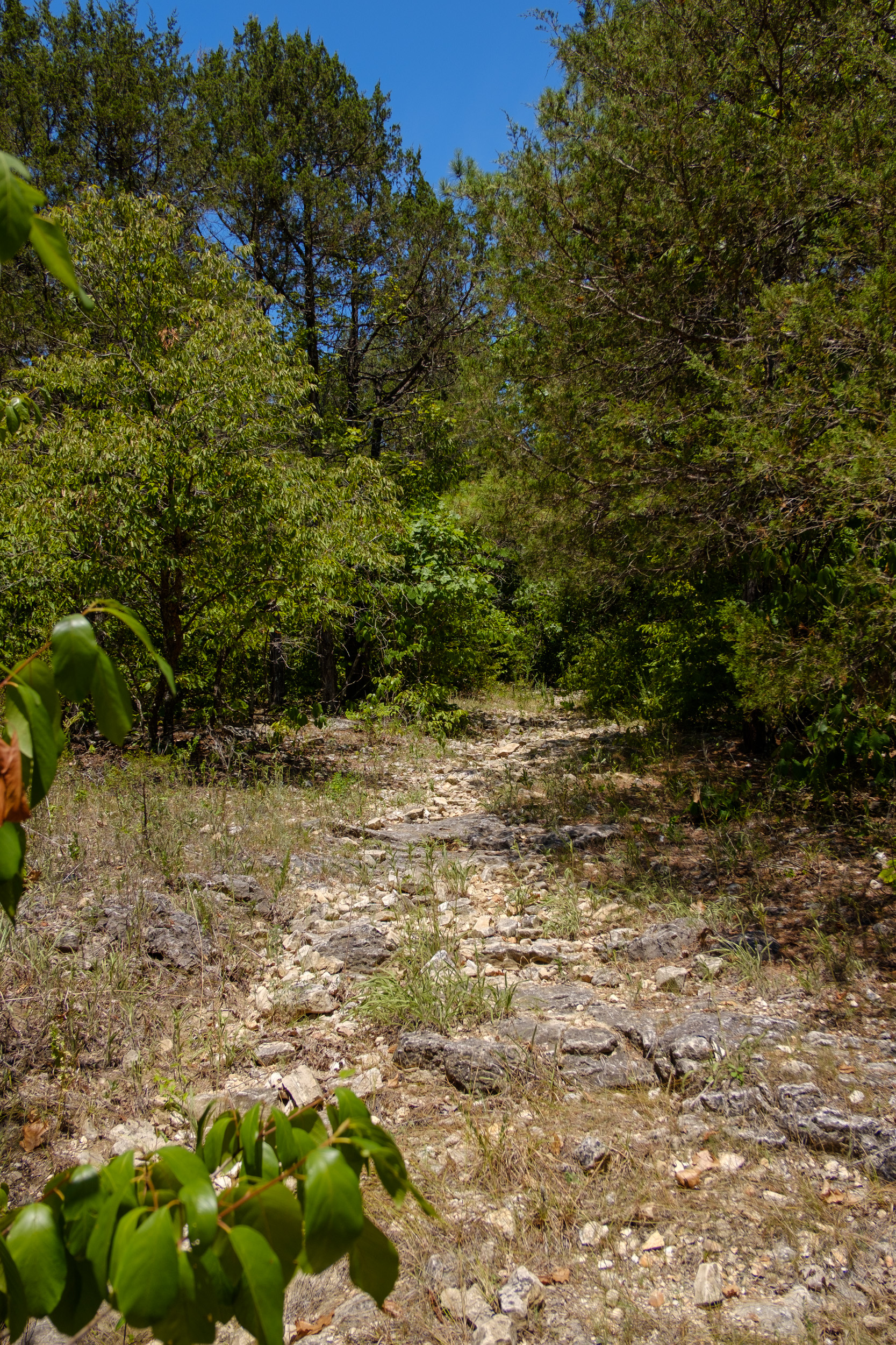 Despite the heat, I decided to do the hike ‘properly’ — which means not cheating by walking the first half mile along Farm road 2150, thus avoiding the descents and climbs at the start of the trail.