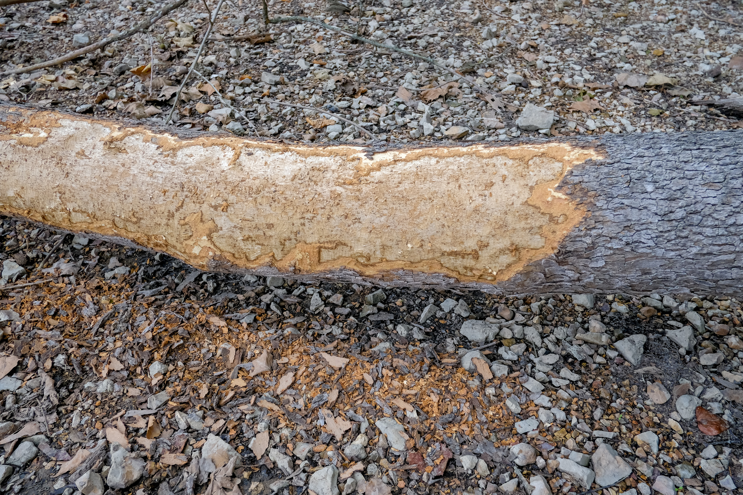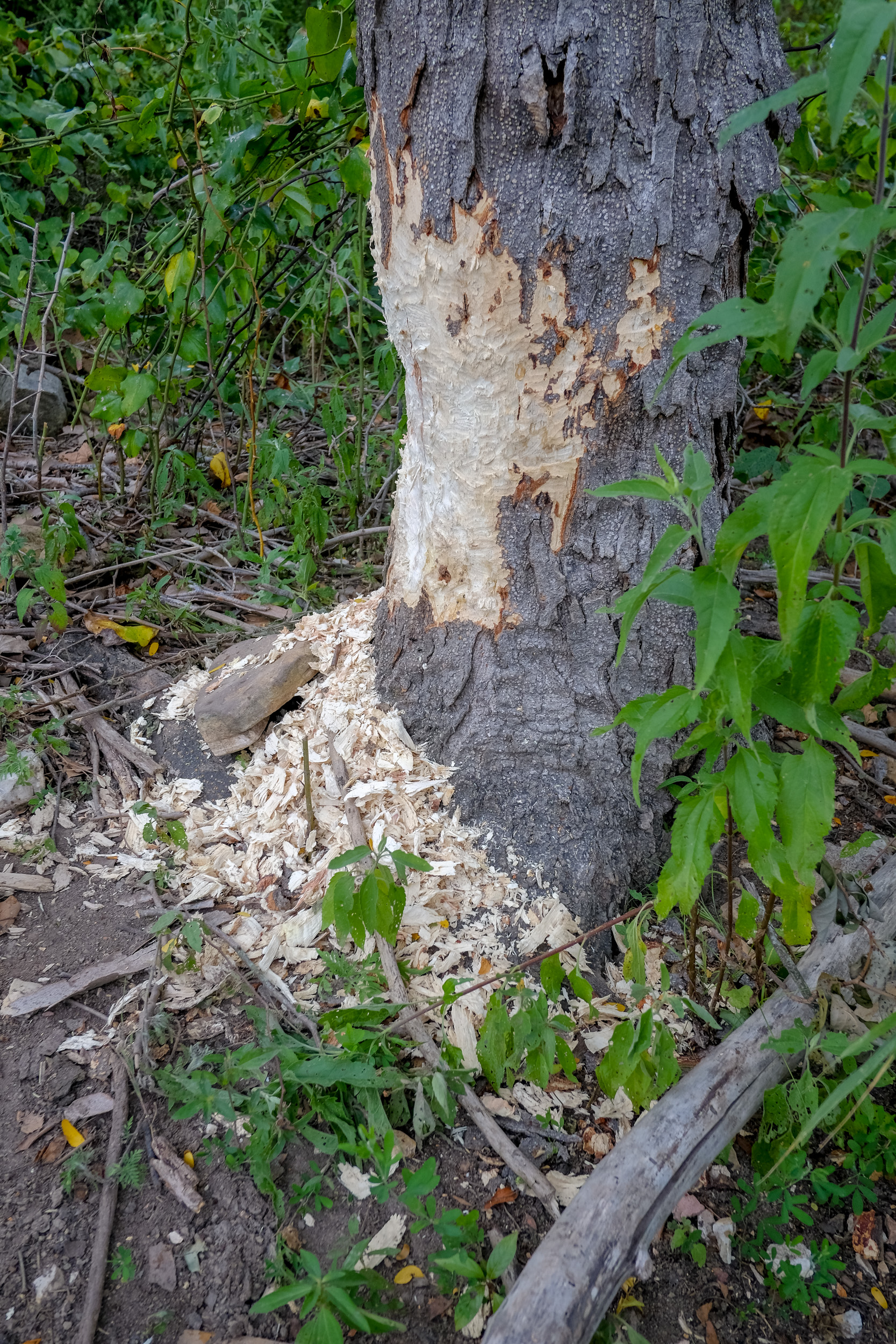 The undergrowth was getting very thick, so I opted to hike along the lakeside. There I saw evidence of active beavers. And then it started to rain. I had decided not to bring rain gear, so I headed back to camp. Fortunately, the trees kept the worst of the light showers at bay. Back in camp, I laid in the hammock listening to the rain pitter-pattering on the tarp. It sounded great, was very soporific, and I slept for far too long, though it was very nice.