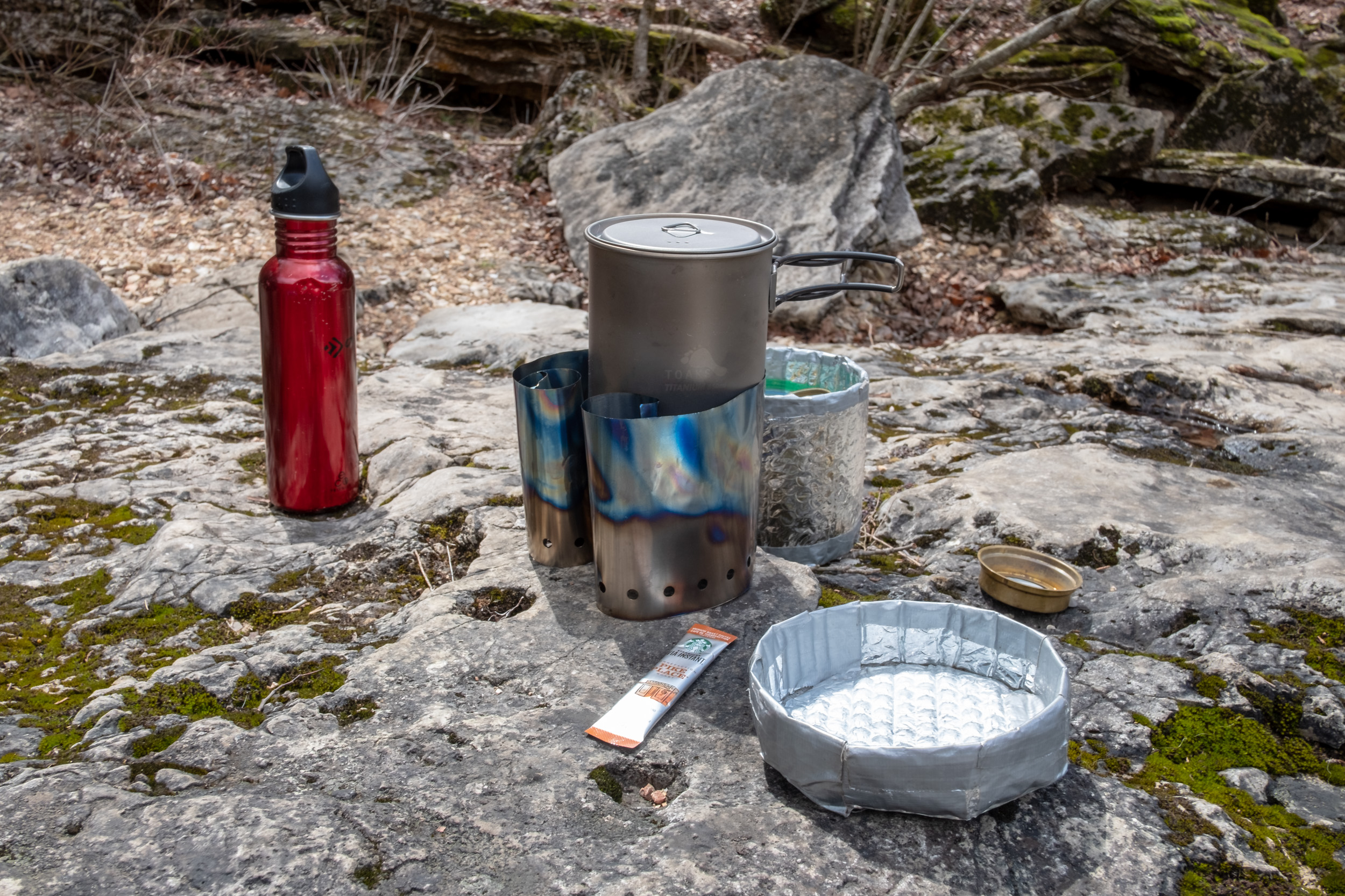 As I prepared my dinner and hot drink for the evening I discovered I’d somehow lost my mug. I had seen it earlier, therefore I concluded that I must have dropped it while switching locations. It wasn’t worth searching for it in the dark, so I made my drink in the cook pot. That started me thinking, and I’ve decided to go without my mug on my next trip. I can drink from my cook pot — I might just as well clean up the cook pot as the mug.